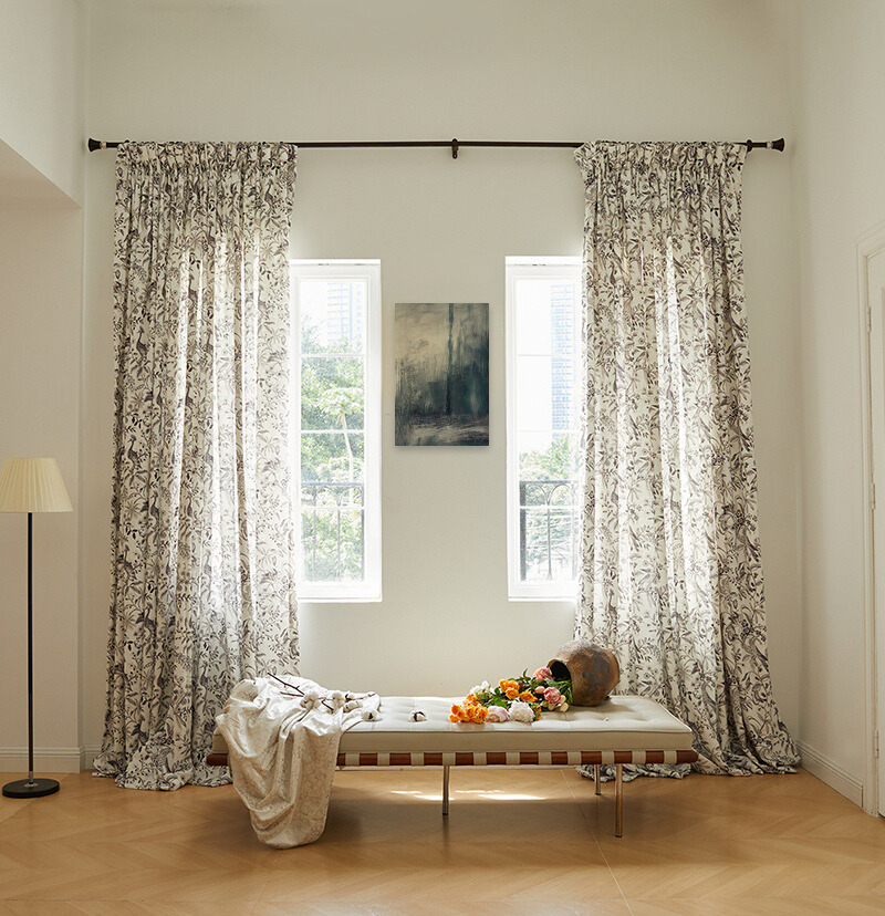 Peacock Linen Blend Heavyweight Floral Patterned Custom Curtain
